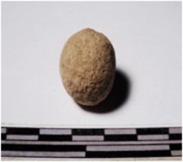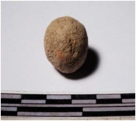 | Description / विवरण | A terracotta sling ball round in shape of smooth surface. |
