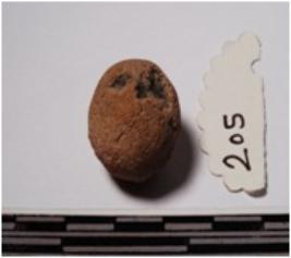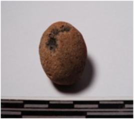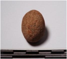 | Description / विवरण | A terracotta sling ball round in shape of smooth surface. |