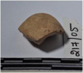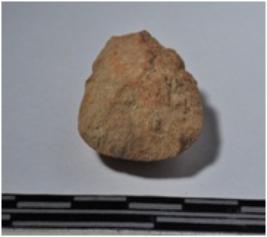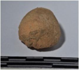 | Description / विवरण | A fragment of a terracotta round shaped sling ball of smooth surface. |