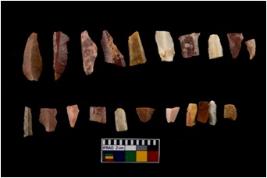 | Description / विवरण | There are n-20 of microliths, all of them are chert. Some of them are partially broken. They show variation in colour, size and shape. Some of them are blunted back baldes, points, triangles, trapezes, crescent and truncated blades. |