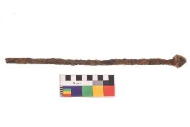 | Description / विवरण | Specimen of a hevaily rusted nail with a circular cap and having ciruclar cross section |