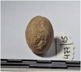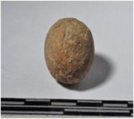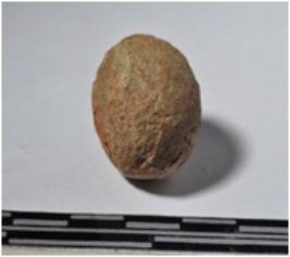 | Description / विवरण | A small terracotta round shaped sling ball of smooth surface. |