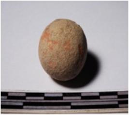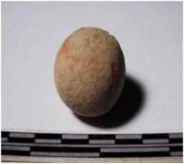 | Description / विवरण | A terracotta sling ball, round in shape information of smooth surface. |