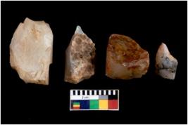 | Description / विवरण | There are n 4 flake cores. All of them are fully fluted flake cores without any trace of crested ridge flakes. Some have flat base. Some have blunted edges and few have round edges. |