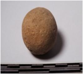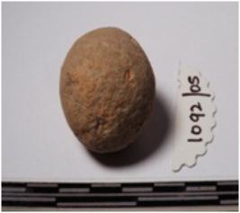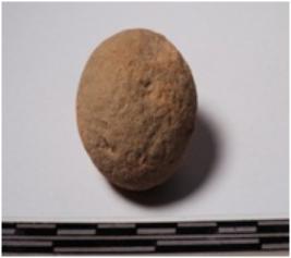 | Description / विवरण | A terracotta round shaped sling ball of smooth surface. |