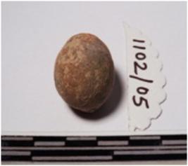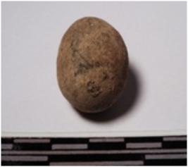 | Description / विवरण | A terracotta round shaped sling ball, round in shape of smooth surface. |