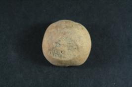 | Description / विवरण | It s a small ball made by terracotta. Colour is ochred and not well fired. Its may be used for a game object and half portion is lost. |