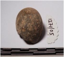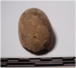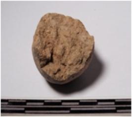| Description / विवरण | A fragment of a terracotta round shaped sling ball, circular in section of smooth surface. |