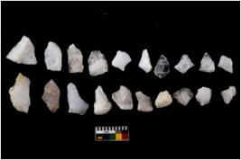| Description / विवरण | There are n 20 Flake tool; There are multidirectional irregular scar pattern on them. few have blunt edges, Some of them are tapering at one end. |