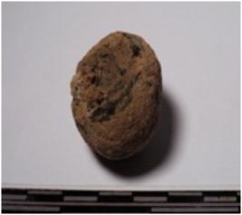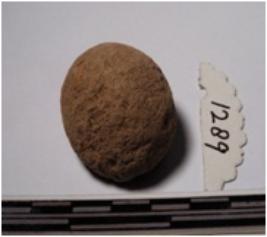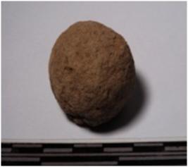 | Description / विवरण | A fragment of a terracotta sling ball round in shape of rough surface. |