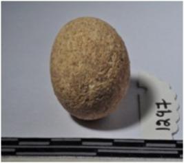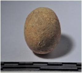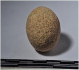 | Description / विवरण | A terracotta round shaped sling ball of smooth surface. |