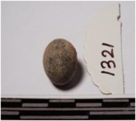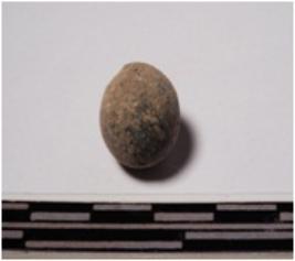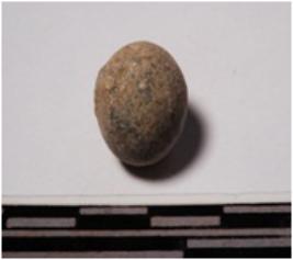 | Description / विवरण | A terracotta round shaped small sling ball, circular in section of smooth surface. |