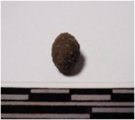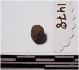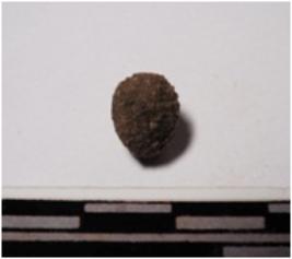 | Description / विवरण | A terracotta round shaped small sling ball of rough surface. |
