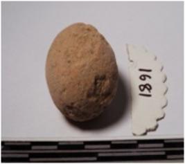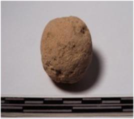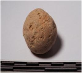 | Description / विवरण | A terracotta round shaped sling ball, circular in section of rough surface. |