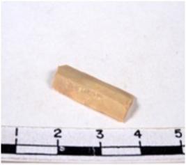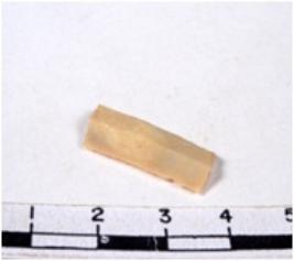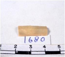 | Description / विवरण | A fragment of a rectangular shaped chert blade showing dorsal sides with sharp cutting edges having smooth surface and triangular section. |