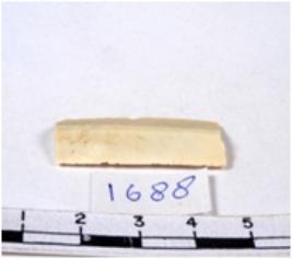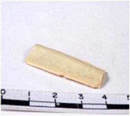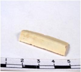 | Description / विवरण | A fragment of a rectangular shaped chert blade showing dorsal sides with sharp cutting edges having smooth surface and triangular section. |