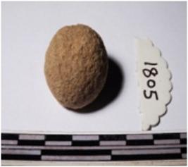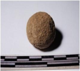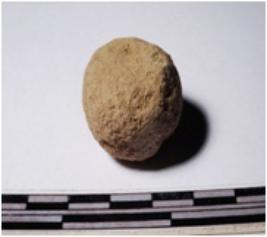 | Description / विवरण | A fragment of a terracotta round in shaped sling ball, circular in section of rough surface. |