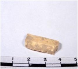 | Description / विवरण | A fragment of a rectangular shaped chert blade showing flat sides with sharp cutting edges having smooth surface and uneven section. |