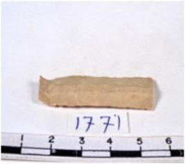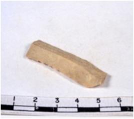 | Description / विवरण | A fragment of a rectangular shaped chert blade showing dorsal sides with sharp cutting edges having smooth surface and triangular section. |