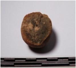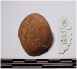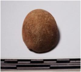 | Description / विवरण | A fragment of a terracotta round in shaped sling ball of rough surface. |