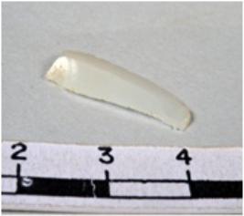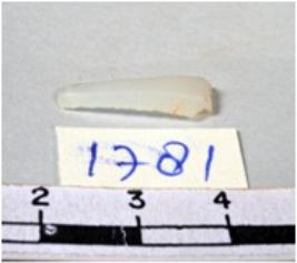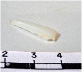 | Description / विवरण | A fragment of a rectangular shaped chert blade showing dorsal sides with sharp cutting edges having smooth surface and triangular section. |