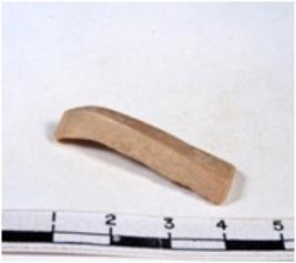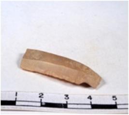 | Description / विवरण | A fragment of a rectangular shaped chert blade showing dorsal sides with sharp cutting edges having smooth surface and triangular section. |
