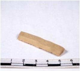| Description / विवरण | A fragment of a rectangular shaped chert blade showing dorsal sides with sharp edges having smooth surface and triangular section. |