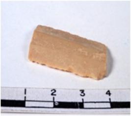 | Description / विवरण | A fragment of a rectangular shaped chert blade showing dorsal sides with sharp cutting edges having smooth surface and triangular section. |