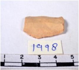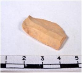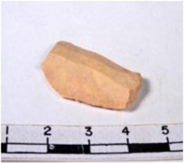 | Description / विवरण | A fragment of a rectangular shaped chert blade showing dorsal sides with sharp cutting edges having smooth surface and triangular section. |