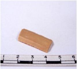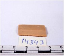 | Description / विवरण | A fragment of a rectangular shaped chert blade showing dorsal sides with sharp cutting edges having smooth surface and triangular section. |