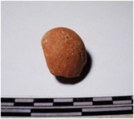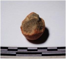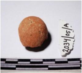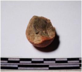 | Description / विवरण | A fragment of a terracotta ball of smooth surface. |