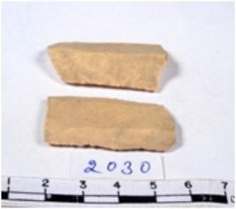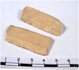 | Description / विवरण | A fragment of a rectangular shaped chert blade showing dorsal sides with sharp cutting edges having smooth surface and triangular section. |
