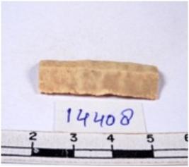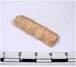| Description / विवरण | A fragment of a rectangular shaped chert blade showing dorsal sides with sharp edges having smooth surface and triangular section. |