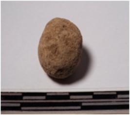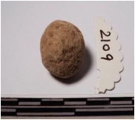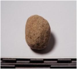 | Description / विवरण | A terracotta round in shaped sling ball of smooth surface. |