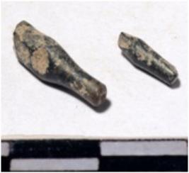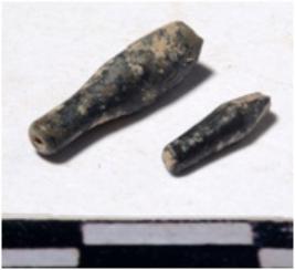 | Description / विवरण | A fragment of a stone drill bit pointed on one end of smooth surface. |
