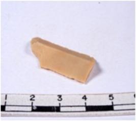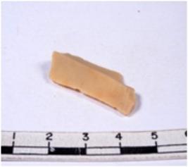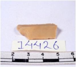| Description / विवरण | A fragment of a rectangular shaped chert blade showing dorsal sides with sharp edges having smooth surface and triangular section. |