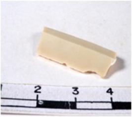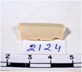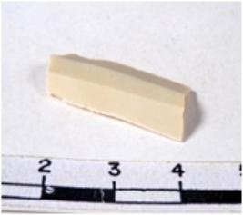 | Description / विवरण | A fragment of a rectangular shaped chert blade showing dorsal sides with sharp cutting edges having smooth surface and triangular section. |