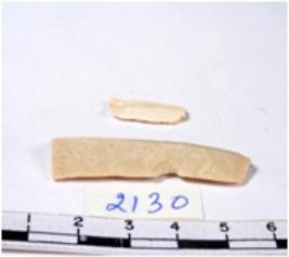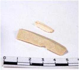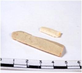 | Description / विवरण | A fragment of a rectangular shaped chert blade showing dorsal sides with sharp cutting edges having smooth surface and triangular section. |