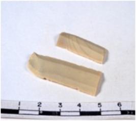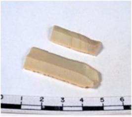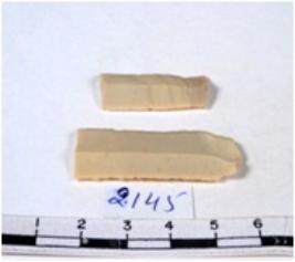 | Description / विवरण | A fragment of a rectangular shaped chert blade showing dorsal sides with sharp cutting edges having smooth surface and triangular section. |
