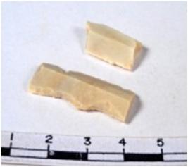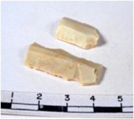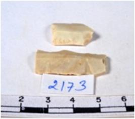 | Description / विवरण | A fragment of a rectangular shaped chert blade showing dorsal sides with sharp cutting edges having smooth surface and uneven section. |