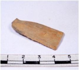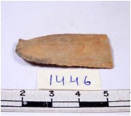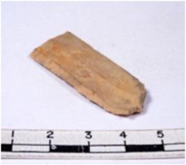 | Description / विवरण | A fragment of a rectangular shaped chert blade showing dorsal sides with sharp cutting edges having smooth surface and triangular section. |