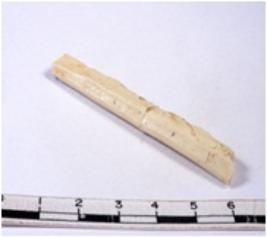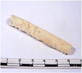 | Description / विवरण | A fragment of a rectangular shaped chert blade showing dorsal sides with sharp edges having smooth surface and triangular section. |