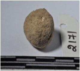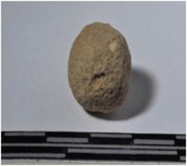 | Description / विवरण | A small terracotta round in shaped sling ball of smooth surface. |
