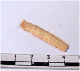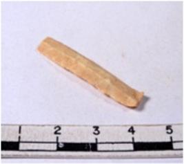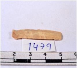| Description / विवरण | A fragment of a rectangular shaped chert blade showing dorsal sides with sharp cutting edges having smooth surface and triangular section. |