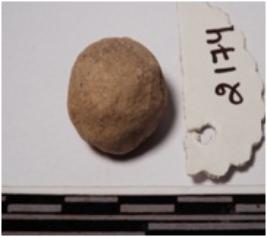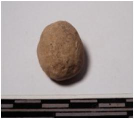 | Description / विवरण | A small terracotta round in shaped sling ball of smooth surface. |