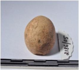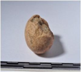| Description / विवरण | A fragment of a terracotta ball round in shape of smooth surface. |