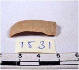 | Description / विवरण | A fragment of a rectangular shaped chert blade showing dorsal sides with sharp cutting edges having smooth surface and triangular section. |