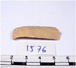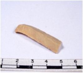 | Description / विवरण | A fragment of a rectangular shaped chert blade showing dorsal sides with sharp cutting edges having smooth surface and triangular section. |