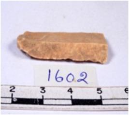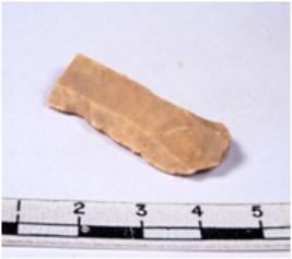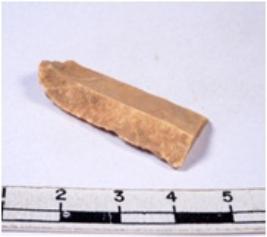 | Description / विवरण | A fragment of a rectangular shaped chert blade showing dorsal sides with sharp cutting edges having smooth surface and triangular section. |
