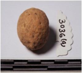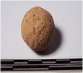 | Description / विवरण | A terracotta sling ball, round in shape of rough surface. |